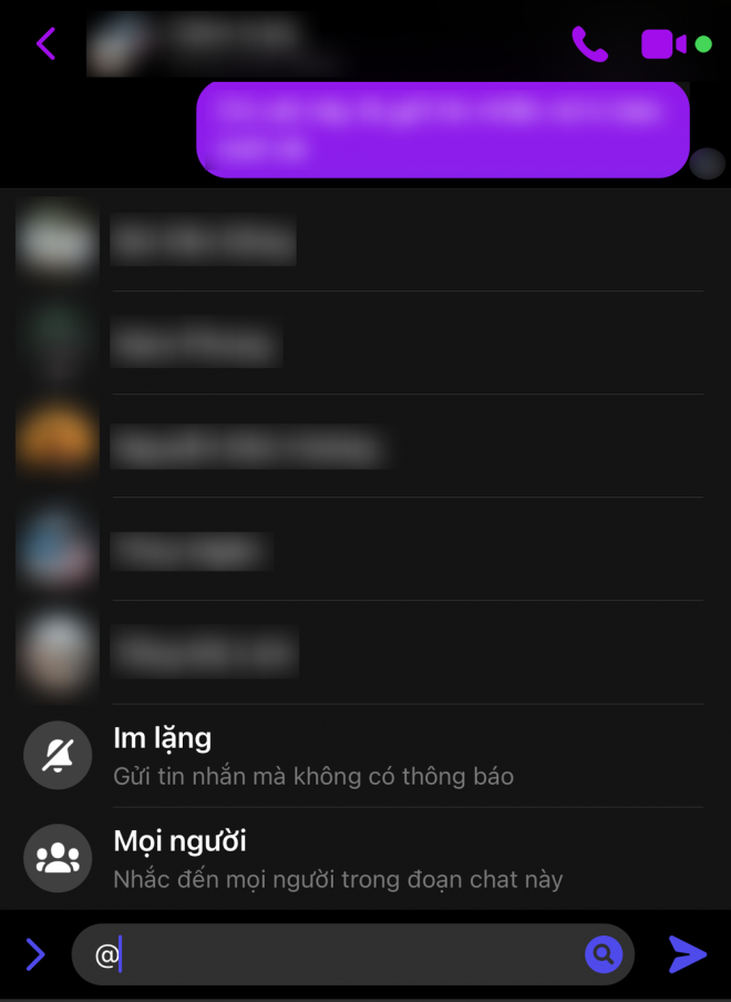 HHT - Hiện tại, Facebook Messenger đã được cập nhật tính năng mới khá hay, giúp bạn có thể tag tất cả người trong nhóm chat Messenger cùng một lúc trên điện thoại, bên cạnh đó bạn còn có thể gửi tin nhắn mà không hiện thông báo chỉ với thao tác cực đơn giản.