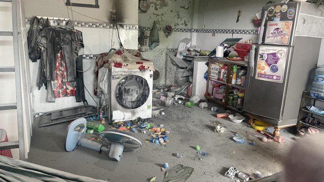 Tại phòng trọ, ngoài anh N.K.K, còn có 2 con nhỏ của anh K. đang ở trên gác la hét kêu cứu nên người dân đã đưa ra khỏi phòng. Thời điểm xảy ra vụ nổ, vợ anh K. không có mặt tại phòng trọ.