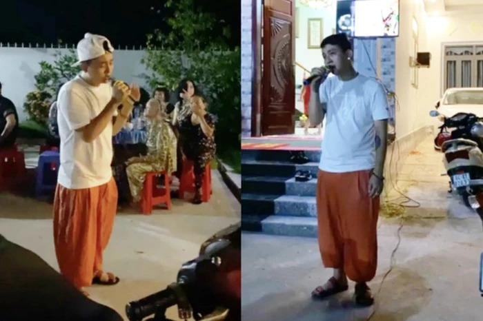 Hoài Lâm ăn mặc thoải mái khi biểu diễn văn nghệ ở quê