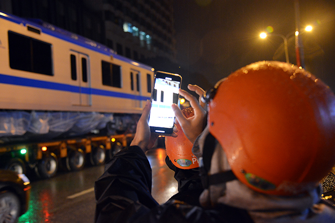 Khi biết đoàn xe siêu trường, siêu trọng chở các toa tàu đi qua đường Tôn Đức Thắng, nhiều công nhân khu vực ga Ba Son (quận 1) đã vỗ tay vui mừng và dùng điện thoại chụp ảnh, quay phim lại những hình ảnh đáng nhớ.