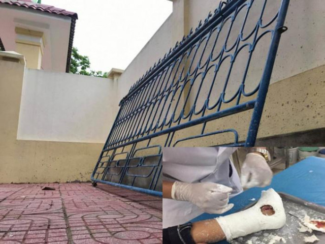 Cổng sắt của trường đổ đè lên chân em học sinh lớp 3 khiến em này bị mẻ xương, khâu nhiều mũi