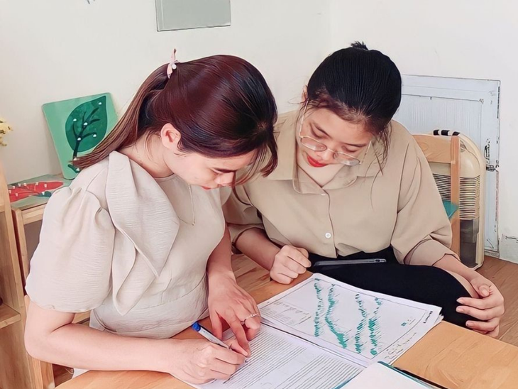 Bạn Nguyễn Thị Xuân (phải) trong giờ dạy kèm 1 - 1 - Ảnh: NVCC