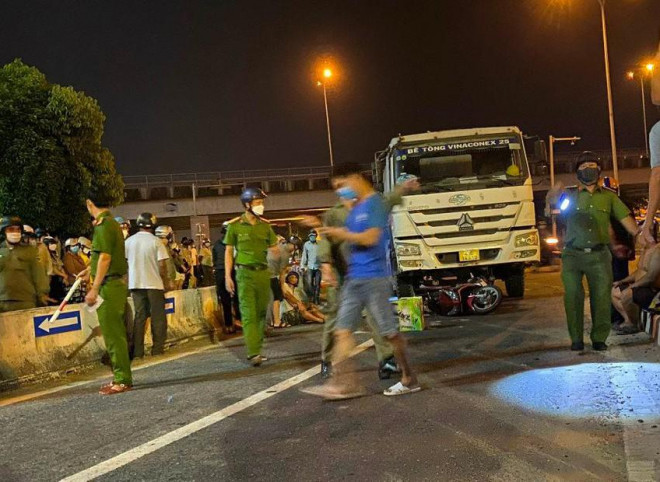 Sau khi bị xe bồn trộn bê tông tông từ phía sau, hai người phụ bị kéo lê hơn 20 m, một người tử vong tại chỗ, người còn lại bị thương nặng.