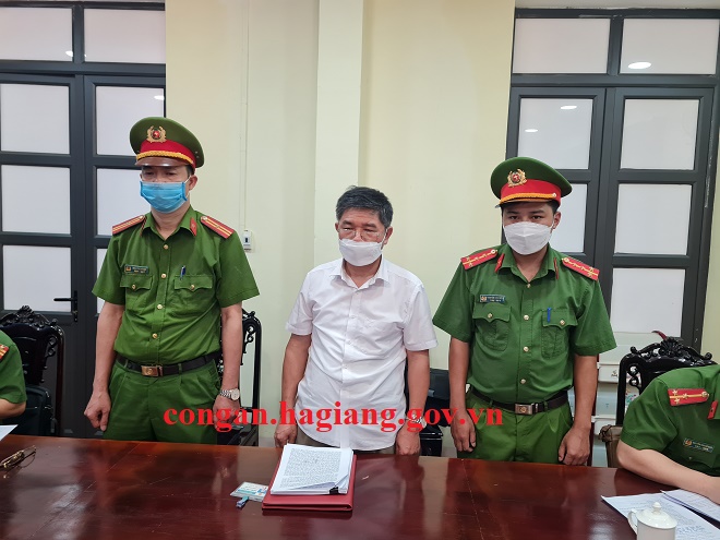 Cơ quan điều tra thi hành lệnh bắt tạm giam đối với ông Đặng Văn Thuỷ. (Nguồn: CA tỉnh Hà Giang)