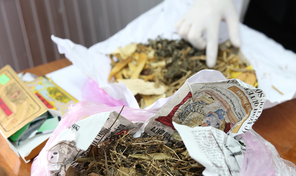 Bệnh nhân khám tại Bệnh viện Chợ Rẫy mang theo gói thuốc "gia truyền" đã uống một thời gian dài. Ảnh: Bệnh viện Chợ Rẫy