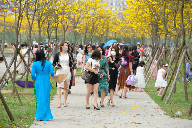 UBND quận Hà Đông (Hà Nội) đã có văn bản yêu cầu các cơ quan chức năng siết chặt công tác phòng chống dịch COVID-19 tại con đường hoa phong linh nở vàng rực.