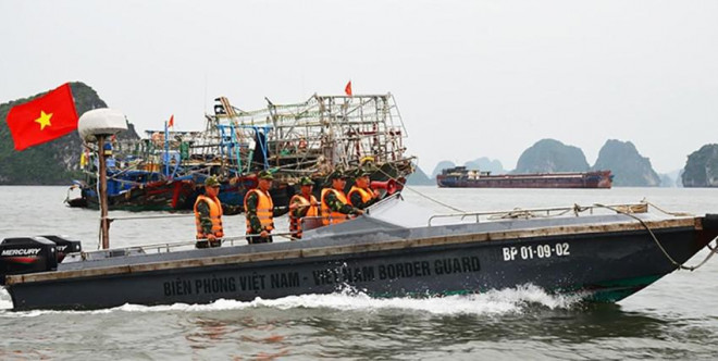 Bộ đội Biên phòng tỉnh Quảng Ninh kêu gọi tàu thuyền vào nơi tránh trú an toàn. Ảnh CTV