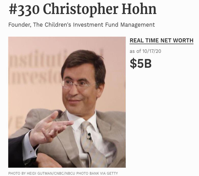 Theo Forbes, tạp chí này công bố giá trị tài sản ròng thực tế của ông ước tính là 5 tỷ đô la vào năm 2020. Hohn được biết tới là một trong những nhà quản lí quỹ đầu tư có thu nhập cao trong top các nhà quản lí quỹ nổi tiếng.