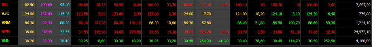 Hôm nay, 2 cổ phiếu lớn là MSN và VIC ở trạng thái đối lập khi đứng đầu 2 thái cực tác động tiêu cực và tích cực nhất đến thị trường. Chốt phiên, MSN tăng 2,68% lên mốc 161.000 đồng/cổ phiếu và mang lại cho VN-Index tới 1,3 điểm. Trong khi đó, VIC đứng đầu nhóm giảm và lấy đi của thị trường tới 2,3 điểm. Chốt phiên VIC giảm 2,44% về mốc 100.000 đồng/cổ phiếu.