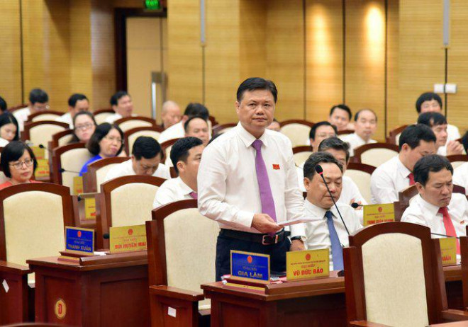 Đại biểu Vũ Đức Bảo, Trưởng Ban Tổ chức Thành ủy Hà Nội, phát biểu tại phiên chất vấn hôm 7-7
