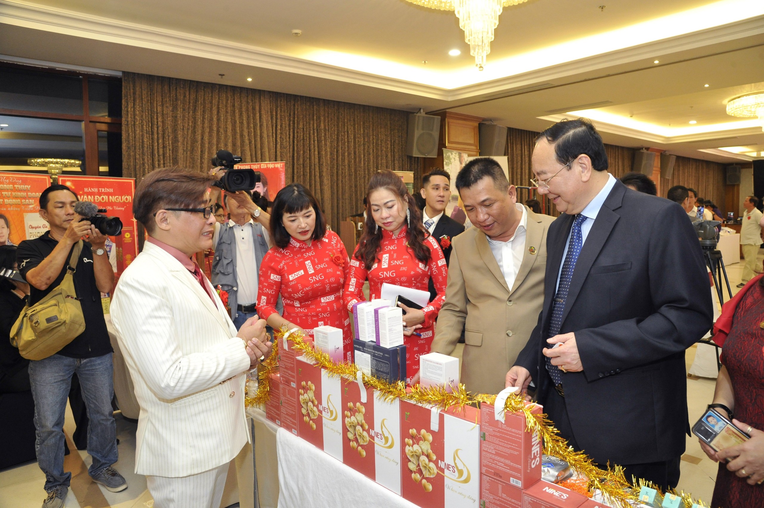 Ông Nguyễn Văn Cường phụ trách Cục Hành chính - Quản trị II - Văn phòng chính phủ cùng ông Tony Trần chủ tịch SNG Group tham quan các gian hàng trưng bày.
