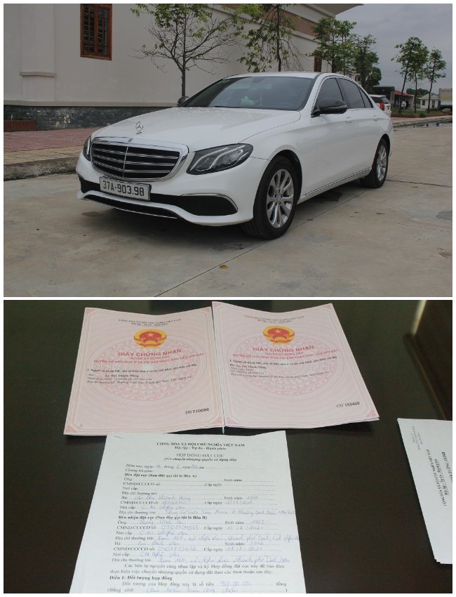Xe Mercedes và giấy tờ do Hằng làm giả.