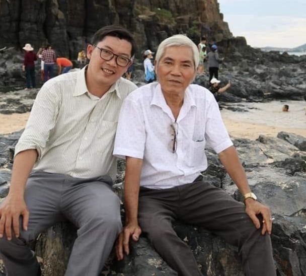 Thầy giáo Lê Đăng Khoa (bên trái) cùng bố của mình.