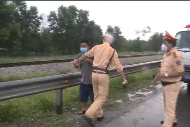 CSGT yêu cầu tài xế xuất trình giấy tờ nhưng lái xe không chấp hành mà lên xe, đóng cửa, gọi điện thoại cho ai đó. Tổ tuần tra kiểm soát tiếp tục yêu cầu lái xe xuống xe làm việc thì lái xe rời ca bin, nhưng vẫn không hợp tác, không khai báo danh tính và bỏ đi.