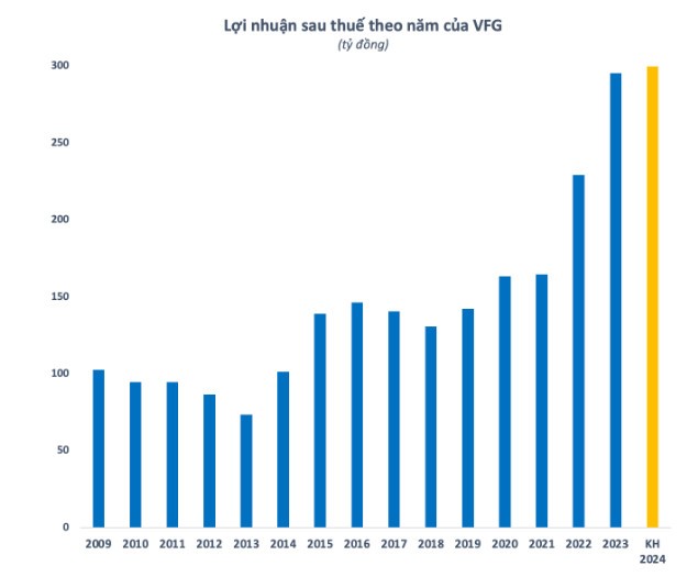 VFG là doanh nghiệp có truyền thống chi trả cổ tức cao hàng năm. Từ khi lên sàn chứng khoán cuối năm 2009, doanh nghiệp này chưa năm nào quên chia cổ tức bằng tiền, tỷ lệ thường xuyên dao động trong khoảng 25-30%. Năm 2024, VFG dự kiến chia cổ tức 20%. Nếu hoàn thành kế hoạch đề ra, không loạt trừ khả năng tỷ lệ chi trả thực tế có thể cao hơn kế hoạch.