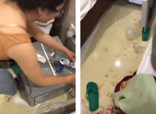 Cô gái xả rác “ngập” phòng khách sạn để trả đũa gây “bão” mạng