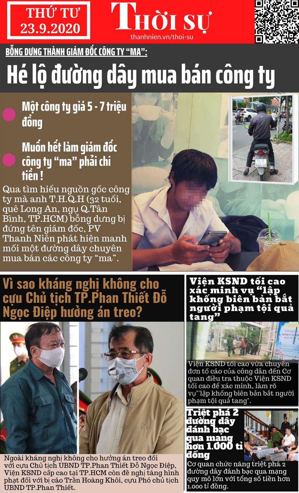 Một số tin tức thời sự đặc biệt báo in Thanh Niên ngày 23.9.2020