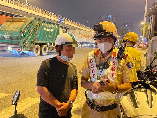 Cũng trong thời gian này, CSGT tiếp tục phát hiện ông L.T.P (ngụ quận Phú Nhuận) chạy xe máy chở một phụ nữ, có dấu hiệu say xỉn. Bị CSGT yêu cầu dừng xe, người đàn ông tấp vào lề làm việc với lực lượng chức năng, bỏ lại trên xe một vật giống chai rượu đang uống dở.