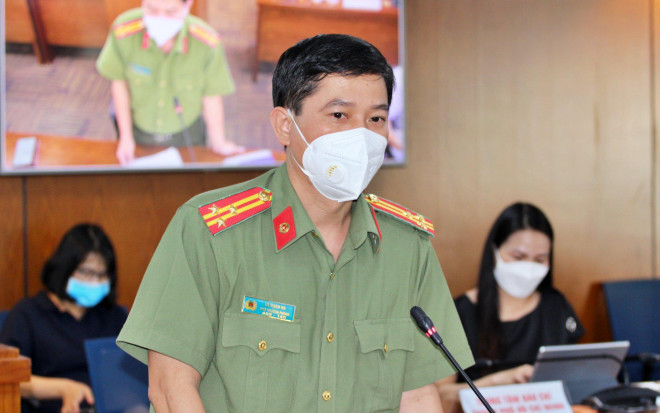 Thượng tá Lê Mạnh Hà, Phó trưởng Phòng Tham mưu, Công an TP HCM thông tin tại buổi họp báo