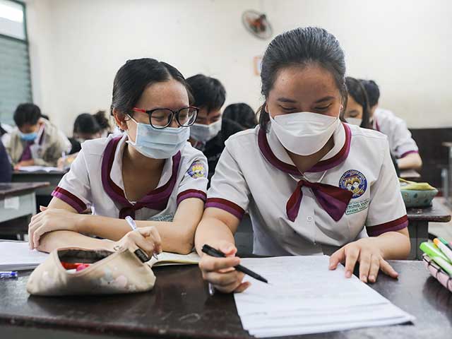 Học sinh khối 7 - 12 học trực tiếp từ giữa tháng 12/2021. Ảnh: Hồng Lam