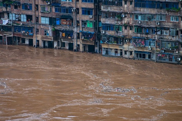 Người dân sống ở Trùng Khánh, thượng nguồn sông Dương Tử đang trải qua lũ lụt tồi tệ nhất kể từ năm 1940. Một khu dân cư nhận được cảnh báo sẵn sàng sơ tán.