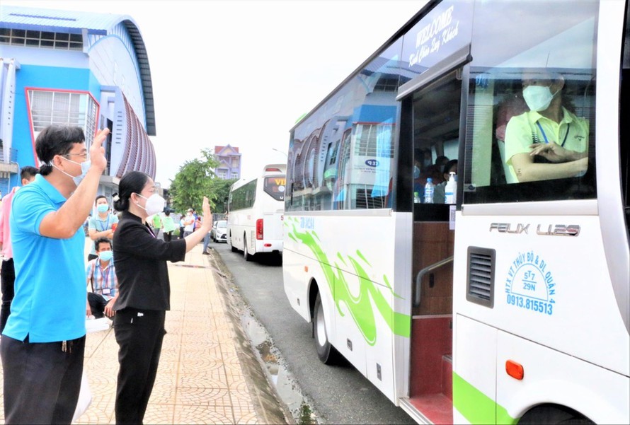 Bình Dương tổ chức xe đến tận quê rước công nhân quay trở lại làm việc - ảnh: Hương Chi