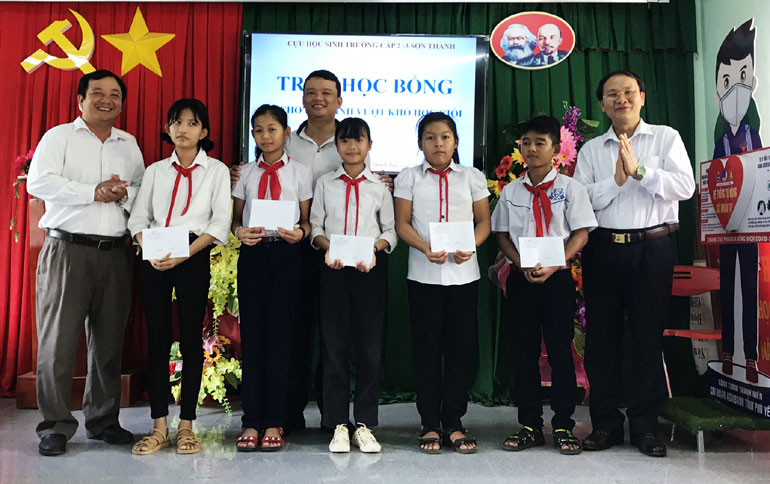 Tại mỗi trường có 5 học sinh được nhận học bổng, mỗi suất 500.000 đồng. Số tiền trên do cán bộ Ban Nội chính Tỉnh ủy và cựu học sinh Trường cấp 2-3 Sơn Thành vận động từ các nhà hảo tâm, qua đó giúp các học sinh có điều kiện trang bị dụng cụ học tập cho năm học mới 2020-2021.