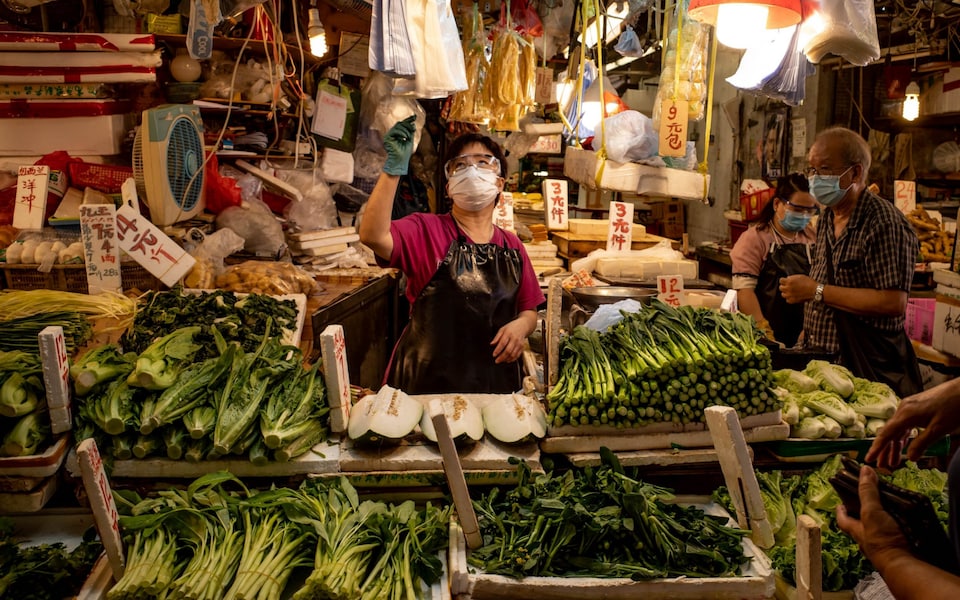 Một quầy hàng nông sản ở Hong Kong, Trung Quốc.