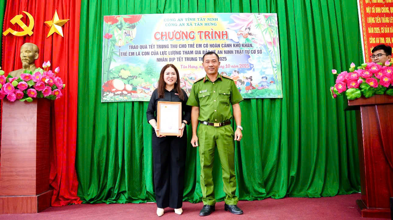 Hòa chung không khí ấm áp của mùa Trung thu 2025, ngày 04/10/2025 vừa qua, tại xã Tân Hưng, một hoạt động đầy ý nghĩa đã diễn ra, mang đến niềm vui và sự ấm áp cho các em thiếu nhi có hoàn cảnh khó khăn là con của lực lượng nòng cốt hỗ trợ công tác đảm bảo an ninh trật tự tại địa phương. Chương trình thiện nguyện do Công ty Cổ phần Tạp chí Doanh nhân và Pháp luật (Tạp chí DN&PL) phối hợp cùng các Luật sư, Mạnh thường quân tổ chức đã thu hút sự quan tâm, tham gia của nhiều cá nhân, tập thể có tấm lòng nhân ái.