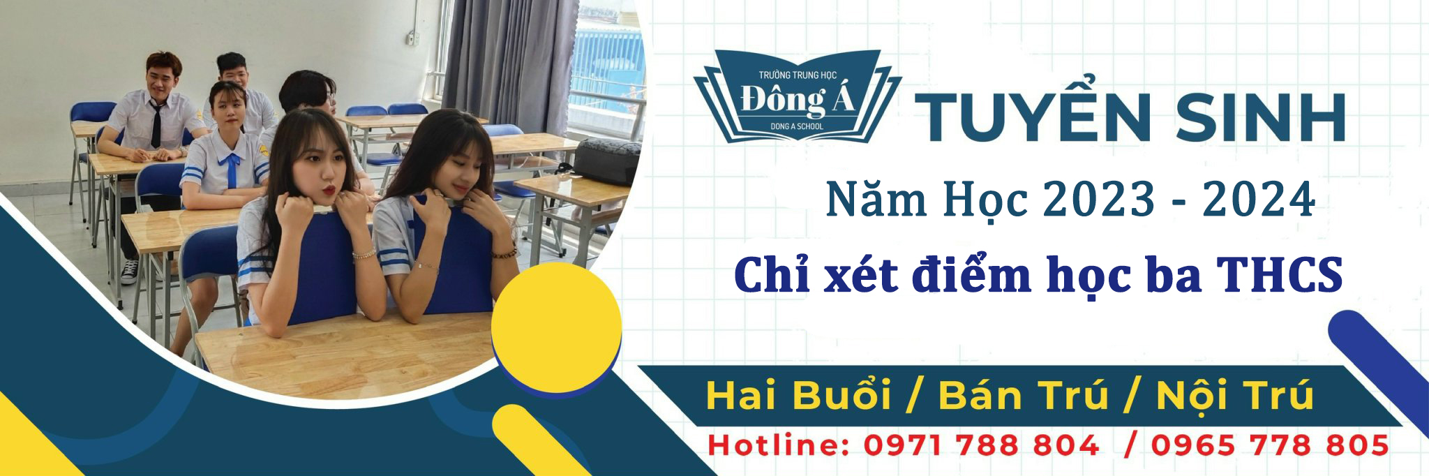 Trường THPT Đông Á tuyển sinh khu vực TPHCM và các tỉnh trên toàn quốc. Bao gồm nhiều cấp học với các diện học Hai Buổi, Bán Trú, Bán Nội Trú và Nội Trú.