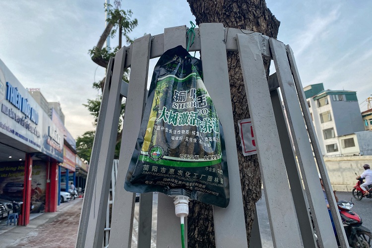 Được biết, ngay sau khi di dời cây vào đúng vị trí theo thiết kế, ngoài xây dựng hệ thống cơ sở vật chất để bảo vệ cây, đơn vị nhà thầu cũng bố trí người tưới nước 2 lần/ngày và bơm thuốc kích rễ mỗi tuần 1 lần. Khi phát hiện cây có biểu hiện khô héo, nhà thầu này đã nhanh chóng hỗ trợ dinh dưỡng bằng cách truyền dung dịch vào thân cây để giúp cây sinh trưởng.