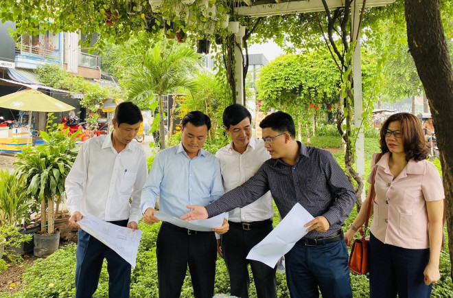 Ông Bùi Xuân Cường (thứ 2 từ trái) - Trưởng Ban Quản lý Đường sắt đô thị TP HCM kiểm tra thực địa tại mặt bằng nhà ga S11 sáng 19-6