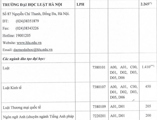 Cụ thể, năm 2022, Trường ĐH Luật Hà Nội tuyển sinh trên cả nước, với các phương thức tuyển sinh gồm: tuyển thẳng và xét tuyển theo đề án riêng của trường.