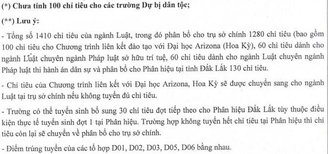 Trong khi đó, mức điểm chuẩn các ngành đào tạo ở Phân hiệu của Trường ĐH Luật Hà Nội tại Đắk Lắk dao động từ 18,40 đến 22,75 điểm.