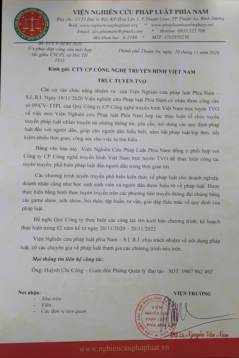 TVO và Viện Nghiên cứu Pháp luật Phía Nam hợp tác truyền thông tuyên truyền pháp luật