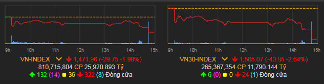 VN-Index giảm 29,75 điểm (1,98%) xuống 1.471,96 điểm.