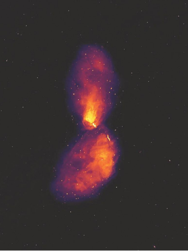 Tất nhiên bạn đã không thể quan sát thấy cặp bóng plasma khổng lồ, dù nó đã hiện hình trên bầu trời và vẫn còn tồn tại, bởi đó là dạng ánh sáng mắt thường không quan sát được. Nhưng "đôi mắt" của kính viễn vọng vô tuyến thì nhìn được, và đã chuyển thể dữ liệu vô tuyến thành hình ảnh.