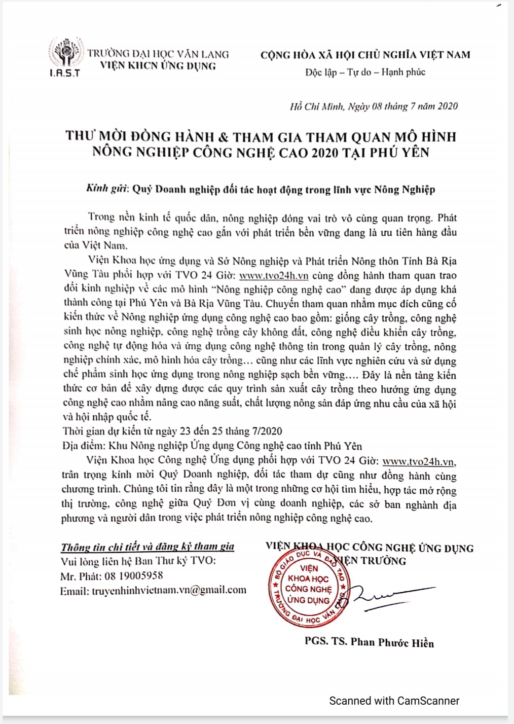 Viện Khoa học Công nghệ Ứng dụng, phối hợp với TVO 24 Giờ trân trọng kính mời Quý Doanh nghiệp, đối tác tham dự cũng như đồng hành cùng chương trình. Chúng tôi tin rằng đây là một trong những cơ hội tìm hiểu, hợp tác mở rộng thị trường, công nghệ giữa Quý Đơn vị cùng doanh nghiệp, Các sở ban nghành địa phương và người dân trong việc phát triển nông nghiệp công nghệ cao