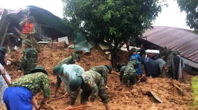 Hiện công tác tìm kiếm 19 cán bộ, chiến sĩ tại Đoàn Kinh tế - Quốc phòng 337 (Quân khu 4) vẫn đang khẩn trương tiến hành, trong tiếng núi sạt đổ ầm ầm rất kinh hoàng.