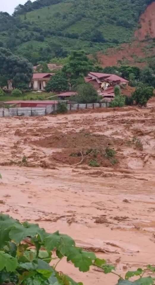 Đất đá đang sạt trượt, nước và bùn trôi từ núi Tạc xuống thành dòng lớn. Nhiều dãy nhà hậu cần tại đơn vị này bị vùi lấp, nhiều xe cơ giới được huy động đến hiện trường để tham gia múc đất, cứu hộ người bị vùi lấp.