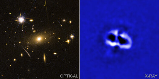 Khí nóng lan tỏa khác các cụm có khối lượng lớn hơn nhiều so với bản thân các thiên hà và phát sáng rực rỡ khi "nhìn" bằng tia X theo cách Chandra đã làm.