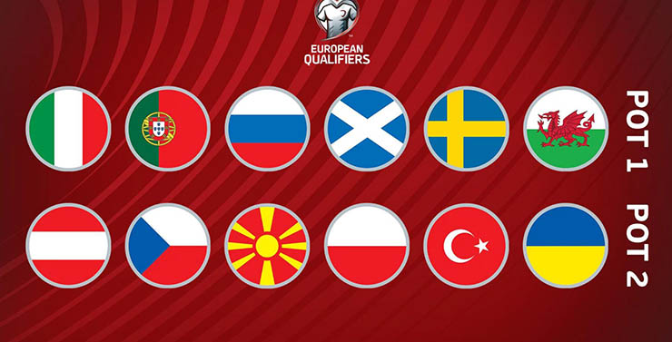 12 đội bóng sẽ được chia làm 2 nhóm. Nhóm hạt giống gồm Bồ Đào Nha, Scotland, Italia, Nga, Thụy Điển, Xứ Wales là các đội xếp thứ hai có thành tích tốt nhất ở vòng loại World Cup 2022 khu vực châu Âu. 6 đội còn lại gồm Thổ Nhĩ Kỳ, Ba Lan, Bắc Macedonia, Ukraine, CH Séc, Áo; trong số này CH Séc và Áo là các đội được đôn lên từ Nations League 2021.