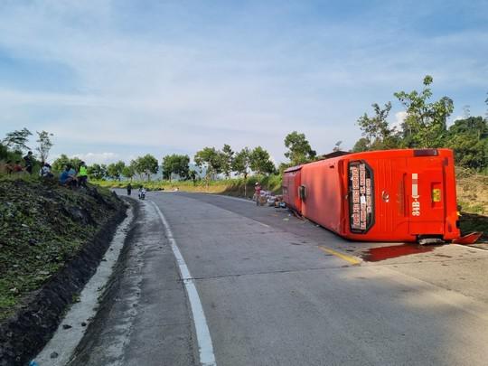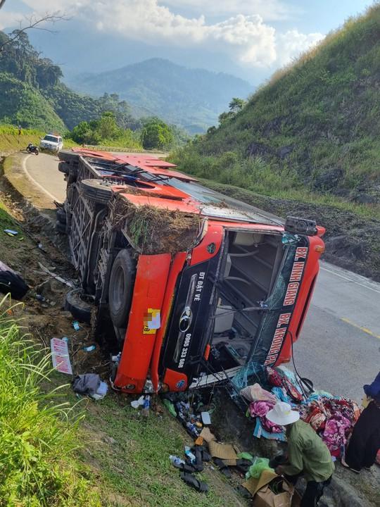 Vào thời điểm trên, tài xế Bùi Công T. (51 tuổi; trú thị trấn Ninh Giang, huyện Ninh Hải, tỉnh Hải Dương) điều khiển xe khách BKS 34B-009... chở 25 hành khách lưu thông theo hướng Kon Tum - Đà Nẵng. Khi đến địa điểm trên, chiếc xe khách bất ngờ bị lật nghiêng bên đường.
