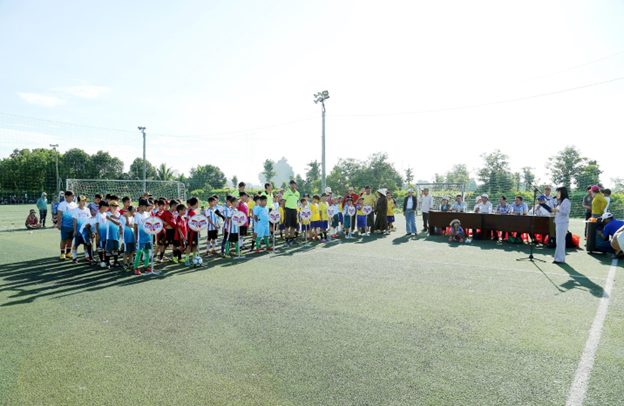 Tại buổi khai mạc, Đồng chí Thái An Nam Bí thư Đảng uỷ; Đồng chí Huỳnh Thị Thanh Thí PCT.HĐND xã; Đồng chí Lê Quang Phụng CT.UBND xã; Đồng chí Phan Công Thoại, PCT UBND xã, Trưởng BCĐ HĐH xã, Trưởng Ban tổ chức giải đã trao cờ lưu niệm, động viên tinh thần các VĐV nhí, để đem lại không khí sôi động, vui tươi cho giải đấu trên tinh thần thể thao trong sáng của lứa tuổi nhi đồng, Đồng chí Phan Công Thoại cũng đề nghị các thôn tiếp tục quan tâm hơn nữa đến phong trào TDTT nói chung, bóng đá nhi đồng nói riêng để góp phần nâng cao sức khỏe cho các em học sinh, lựa chọn được những nhân tố điển hình trong phong trào để có hướng rèn luyện, phát triển đóng góp cho thành tích thể thao của xã ngày càng đi lên trong những năm tiếp theo.