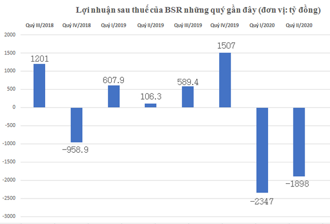 Quý II/2020, doanh thu từ hoạt động tài chính của doanh nghiệp đạt 273 tỷ đồng, tăng 164 tỷ đồng so với cùng kỳ năm 2019. Chi phí bán hàng, chi phí quản lý doanh nghiệp, chi phí lãi vay đều giảm so với cùng kỳ nhưng lợi nhuận sau thuế của BSR vẫn ghi nhận khoản lỗ 1.898 tỷ đồng. Đây cũng là quý thứ 2 liên tiếp BSR ghi nhận lỗ nghìn tỷ khi quý I/2020 doanh nghiệp cũng đã lỗ tới 2.347 tỷ đồng.
