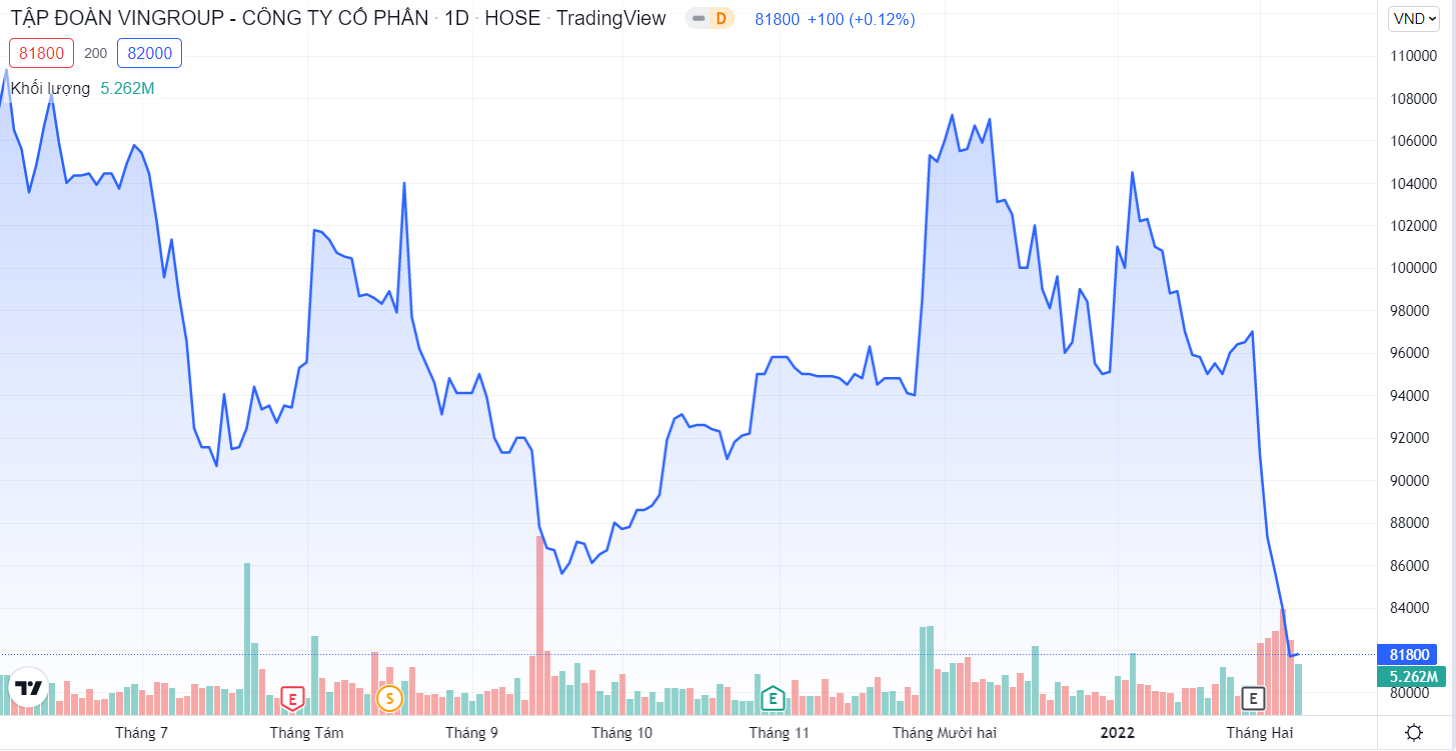 Cổ phiếu VIC lao dốc liên tục những ngày đầu năm Nhâm Dần khiến tài sản vợ chồng tỷ phú Phạm Nhật Vượng, Phạm Thu Hương giảm đáng kể
