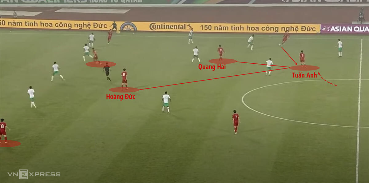 Với 3-5-2, Quang Hải và Hoàng Đức được tự do hoạt động ở mỗi biên, được chơi cao hơn đúng với sở trường và tham gia vào mặt trận tấn công nhiều hơn. Hỗ trợ cho họ ở phía dưới là những tiền vệ phòng ngự có khả năng thu hồi bóng và luân chuyển bóng ở đoạn ngắn đủ chất lượng là Tuấn Anh hoặc Đức Huy. Khi ấy, hai cầu thủ chạy cánh của Việt Nam có được sự hỗ trợ và kết nối tốt hơn từ khu vực trung lộ, qua đó khoả lấp phần nào sự thiếu hụt về sự dẻo dai cùng như khả năng hỗ trợ tấn công so với Trọng Hoàng và Văn Hậu. Trên hàng tiền đạo, Tiến Linh – người không thể hoạt động như một tiền đạo mục tiêu như Anh Đức - được bắt cặp cùng một người đồng đội có khả năng hoạt động rộng như Công Phượng để tạo ra tính liên kết tốt hơn.